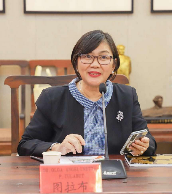 崔荫副校长对DR.OLGA ANGELINETTA P.TULABUT副校长一行的来访表示热烈欢迎,并简要介绍了我校的基本情况、学科优势及近年来国际化发展所取得的成绩。她表示,通过这次合作办学,希望进一步推动两校在人才培养、科学研究、文化交流等方面的深入合作,也祝愿这次合作能够为两国教育事业的发展注入新的活力,为构建人类命运共同体作出积极的贡献。
