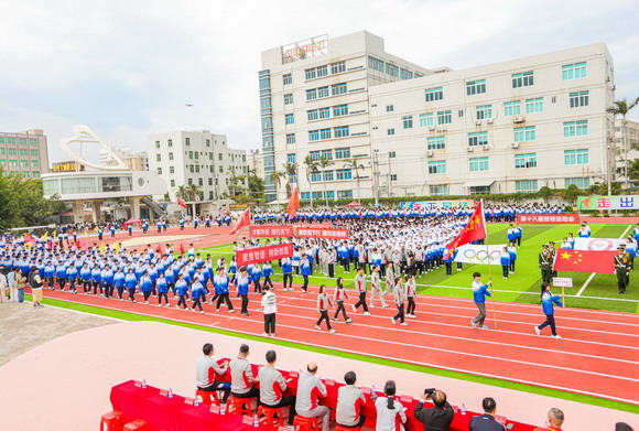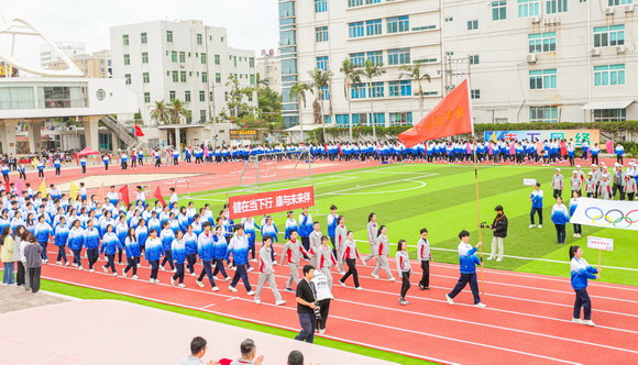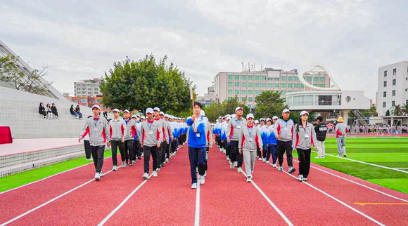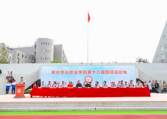 初冬华园,天朗气清。11月16日上午,泉州华光职业学院第十八届田径运动会盛大开幕,华光学子和全体教职员工身着运动校服齐聚运动场参加开幕式。理事长吴其萃、校长陈雅芳、党委副书记陈雄华、副校长崔荫、总会计师黄金华、体育工作委员会主任吴永江以及各二级学院领导和各部门负责人列席主席台,检阅各方队和师生运动员入场。开幕式由学生处处长黄强主持。