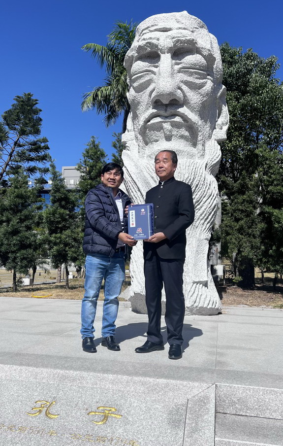 11月18日上午,柬埔寨驻华大使馆一等秘书任纳利领事在华光文创研究院杨荣文执行董事的陪同下莅临泉州华光职业学院参观考察。我校理事长吴其萃接待陪同。任纳利领事一行在吴其萃理事长的带领下,兴致勃勃地参观了我校校史馆、摄影艺术博物馆、华光非遗传承大道,任纳利领事对华光的办学成果大为赞赏,特意在孔子雕像前向吴其萃理事长赠送中柬建交65周年纪念品。双方就下一步联合办学,柬方派出留学生来华事宜、中柬人文交流等方面达成诸多协议。