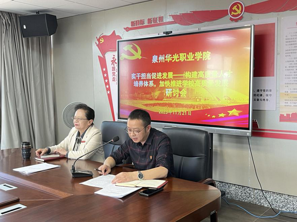 图书馆馆长吴峻峰、摄影与电影技术学院副院长曹博两位同志分别对“构建高质量人才培养体系,加快推进学校高质量发展”主题进行了交流发言。