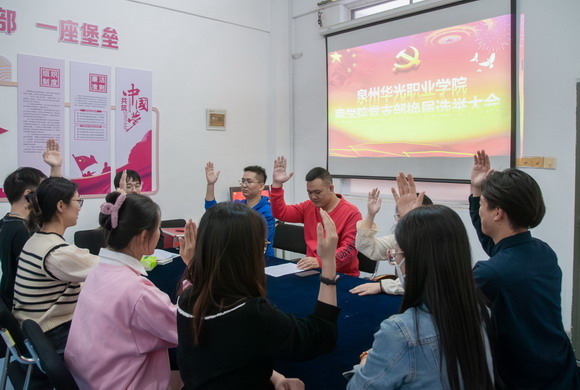 为深入开展学习贯彻习近平新时代中国特色社会主义思想主题教育,进一步夯实基层党组织建设,增强党支部组织力、战斗力,发挥基层党组织的战斗堡垒和先锋模范作用,根据《中国共产党章程》和《中国共产党基层组织选举工作条例》相关规定,经校党委批准,11月15日下午,中共泉州华光职业学院商学院支部委员会召开换届选举党员大会,选举产生新一届支部委员会委员。会议由党支部书记蓝保原主持,全体党员同志参加会议。