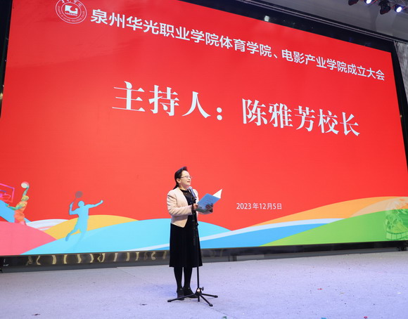 为响应国家号召,蓬勃体育和电影事业,培养德智体美劳全面发展的社会主义建设者和接班人,同时迎接2023级新同学的到来,12月5日,由福建省高校摄影专业委员会、福建广电与网络视听产教融合联盟协办的泉州华光职业学院体育学院、华光电影产业学院成立大会暨2023迎新文艺演出在新落成的泉州华光职业学院体育馆隆重举行,福建省高校联盟来自台湾摄影家交流协会的46位台湾摄影师,中国联通泉州分公司、招商银行泉州分行、中国移动台商区公司等赞助单位的负责人,我校吴其萃理事长、全体校领导、中层干部以及2023级新生代表齐聚一堂,共同见证华光体育学院和电影产业学院揭牌成立,观赏2023迎新文艺演出。