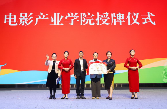 副校长崔荫向华光电影产业学院院长黄建土、副院长林滨颁授牌匾。