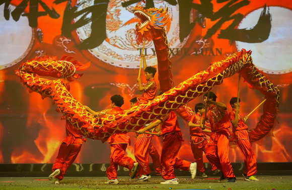 揭牌仪式结束后,“展华彩乐章,敬光辉年代”——2023迎新文艺演出精彩上演。来自各二级学院的同学们与校艺术团、街舞协会、模特协会、武术协会的同学们奉上了一场精彩纷呈的演出。