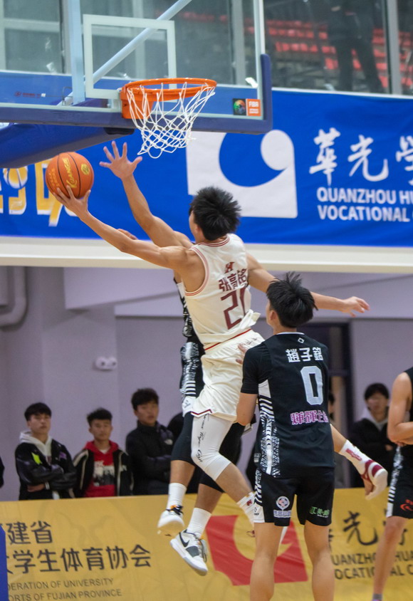 经过激烈的奋战,揭幕战华侨大学以68∶57逆转取胜。