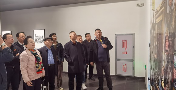 (福建省福建省摄影家协会主席潘朝阳在崔波馆长和吴其萃理事长陪同下观看展览)
