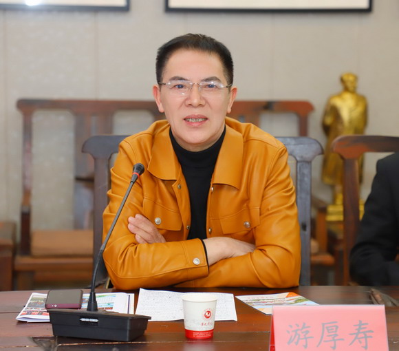 福建省生态文明建设促进会秘书长游厚寿作为代表发言,对校友们表示问候,向华光学院的建设发展表示祝贺,他盛赞校友吴其萃理事长的教育情怀和义举,祝福学校越办越好。