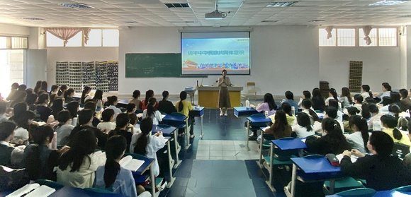 课上,施茜老师从全面准确领会习近平总书记关于加强和改进民族工作的重要思想以及从政治共同体意识、经济共同体意识、文化共同体意识、法律共同体意识、心理共同体意识五个方面为切入点,与同学们分享生动贴切的案例。鼓励青年学子树立正确的国家观、历史观、民族观、文化观、宗教观,铸牢民族共同体意识,弘扬新时代爱国主义精神。