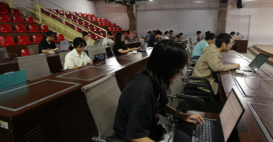竞赛现场,选手们聚精会神,按照图纸要求完成构建建筑和结构土建、钢筋信息录入,工程量自动统计汇总,关联清单定额等操作。