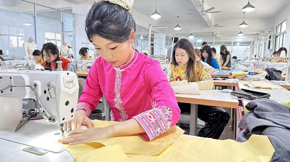 “服装工艺技术”竞赛则全面考核选手们的成衣制作水平及职业素养。参赛者需按照高效工序完成连衣裙的缝制与整烫,展现了他们在裁剪、制作、熨烫、后整理等方面的综合能力。