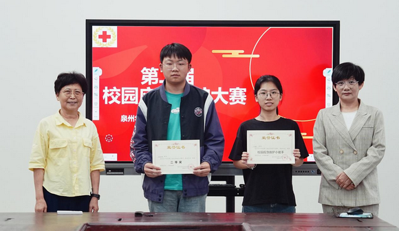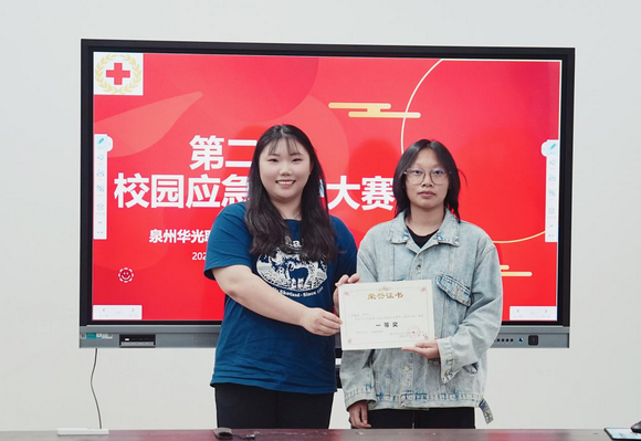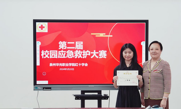 为了提高学生群体的应急救护意识和能力,加强学校安全教育,培养学生在紧急情况下自救、互救的能力,5月22日泉州华光职业学院红十会在惠安校区举行第二届校园应急救护大赛决赛。希望通过大赛的形式,让学生在实践中学习、在竞争中提高,以达到普及应急救护知识、提高实际操作能力的目的。副校长、校红十字会会长崔荫及健康管理学院院长刘小玲出席并为获奖学生颁奖。