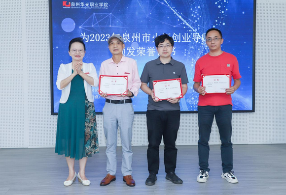 陈雅芳校长为2023年泉州市火炬创业导师颁发荣誉证书。