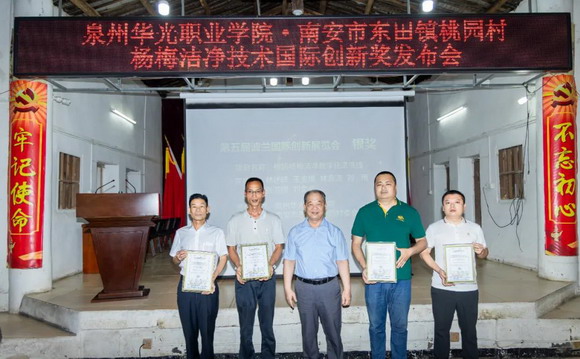 6月13日“桃园杨梅洁净技术国际创新奖发布会”在桃园村隆重举行。南安市东田镇有关党政领导、泉州华光职业学院师生代表、桃园村“两委”成员和村民代表出席会议。