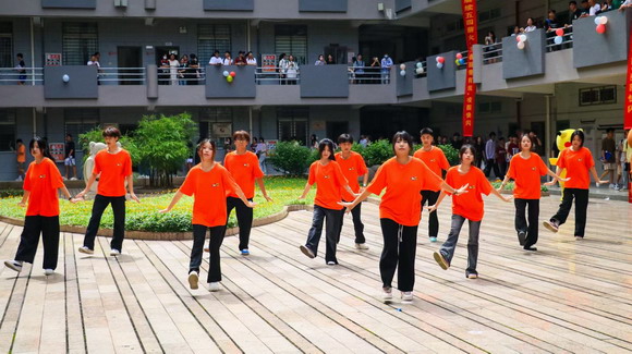 一首电吉他弹奏的《冲动》将本次快闪活动拉开了帷幕,同学们随着《第一天》的每一个节奏,展现自己,舞动青春;