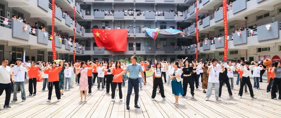 为了丰富校园文化生活,提高学生的艺术修养和审美情趣,展现商院学子奋发有为的青春风采。6月12日上午,泉州华光职业学院商学院于南区教学楼中庭广场举办第十一届“赓续五四薪火,青春挺膺有我”校园快闪活动。校长陈雅芳、党委书记吕红军、副书记陈雄华以及各学院书记莅临现场指导,快闪现场气氛热烈,吸引了众多师生驻足观看,共同见证了这一充满活力与创意的校园文化盛宴。