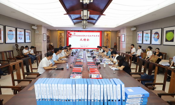 我校在行政楼一楼会议室举行检查汇报会。