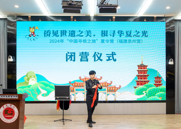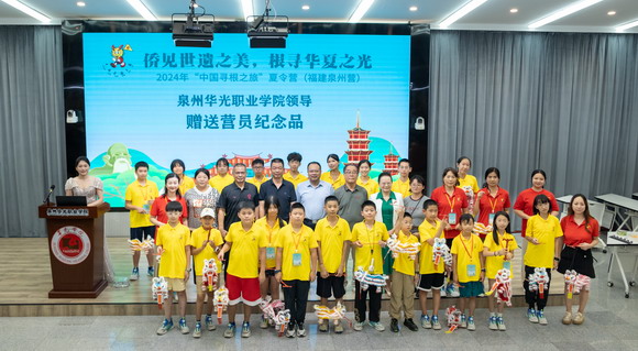 8月5日下午,2024年“中国寻根之旅”夏令营——加拿大华裔青少年泉州营完成了为期10天的中华文化寻根之旅,在泉州华光职业学院胜利闭营,学校在摄影实训大楼五楼智慧教室举行闭营仪式,泉州市侨联党组成员、副主席邱联光,加拿大多伦多泉州同乡联合总会会长林志伟、加拿大多伦多泉州同乡联合总会副会长廖荣波、加拿大多伦多泉州同乡联合总会副会长林耀煌,泉州华光职业学院理事长吴其萃、校长陈雅芳、副校长吴永江,全体加拿大多伦多华裔师生以及部分华光师生代表出席闭营仪式。