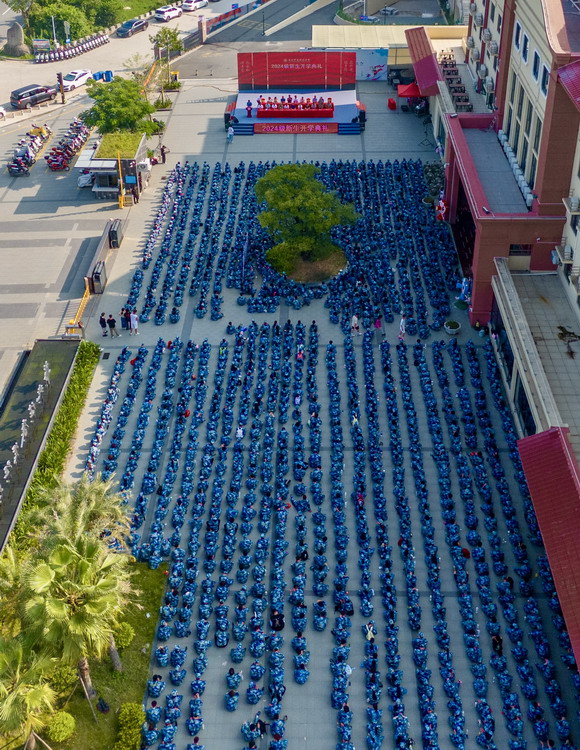 9月11日上午,泉州华光职业学院惠安校区在综合楼广场举行2024级惠安校区新生开学典礼暨军训动员大会,2000多名惠安校区的新生身着迷彩服,精神奕奕参加典礼,全体校领导,73141部队军官,健康管理学院和工艺美术学院院长、书记,以及教务处、学生处等相关部门负责人出席。