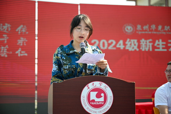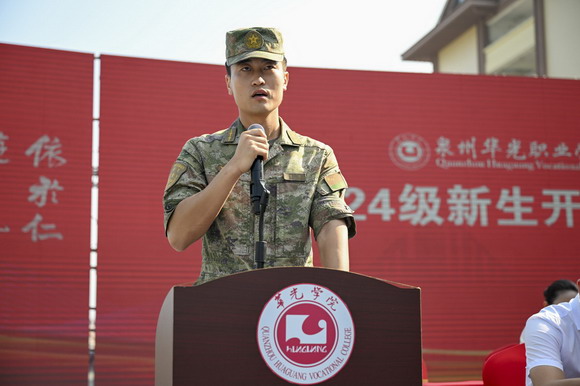 陈雅芳校长在致辞中,对惠安校区新生的到来表示欢迎,向部队的教官表示感谢。她向新同学介绍华光的传奇历史,细数华光的荣誉奖项,希望同学们恪守华光校训,树立“有理想、有品德、有规划、有技能、有创新”的学习目标,珍惜青春光阴,开启一段新的奋斗旅程。