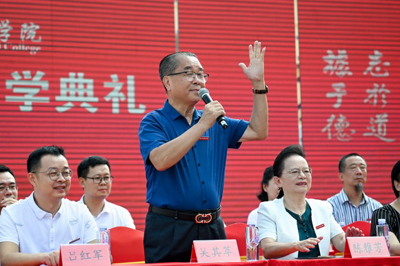 吴其萃理事长宣布2024级惠安校区新生军训正式开始。