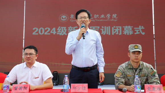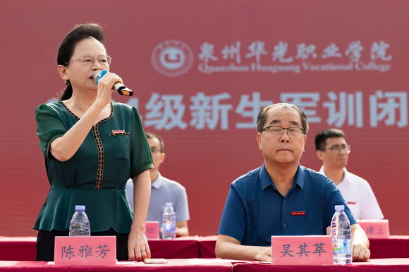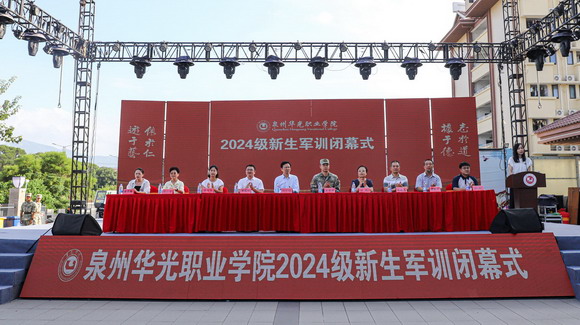 2024年9月20日上午8点,泉州华光职业学院2024级新生军训闭幕式在台商校区、惠安校区同步举行。73141部队自动化站上校站长曾玮琳、总教官杨旭、袁康程,我校理事长吴其萃、校长陈雅芳、党委书记吕红军、副理事长邱少煌、党委副书记陈雄华、副校长崔荫、副校长林述琦、总经济师黄金华、副校长吴永江、相关职能部门负责人、二级学院院长以及党支部书记等相关领导出席此次大会。本次大会分别由学生处黄强处长和陈一婷副处长主持。
