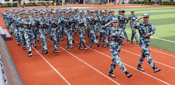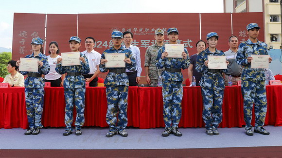 陈雅芳校长宣布泉州华光职业学院2024年学生军训会操开始。