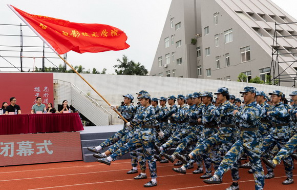 大会在慷概激扬的校歌中拉开帷幕,吕红军书记、崔荫副校长进行了闭幕式致辞。两位校领导感谢承训部队的辛苦付出,也肯定了同学们在本次军训中的表现,希望全体同学秉承“志于道、聚于德、依于仁、游于艺”的校训精神,贯穿于今后的生活和学习中,高标准、严要求地规范自己的言行,刻苦学习,踏实做人,在紧张、忙碌而又多姿多彩的大学生活中,取得傲人的成绩!