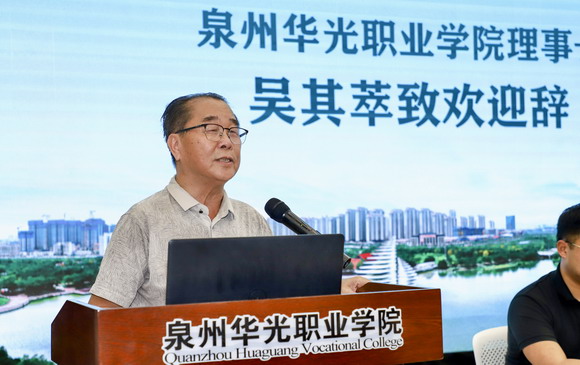 泉州华光职业学院理事长、华光侨联主席吴其萃先生首先致欢迎辞,他强调“寻根团”秋令营的是富有意义的活动,希望营员们能借此机会和华光的学子们一道深入了解祖(籍)国的历史与文化,增强对中华文化的自豪感和认同感。