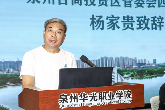 杨家贵先生在致辞中希望同学们能在古城泉州和活力台商区感受世遗文化、品位闽南风情、续写中华情缘。他表示,本次活动将是一次增进血脉亲情的寻根之旅、感悟中华文化的体验之旅、深入互动交流的友谊之旅。他希望同学们珍惜学习机会,把在祖国的所见所闻、所学所感与海外的家人和朋友们交流分享,主动担当好中国与其他国家增进友谊、深化交流的友好使者。