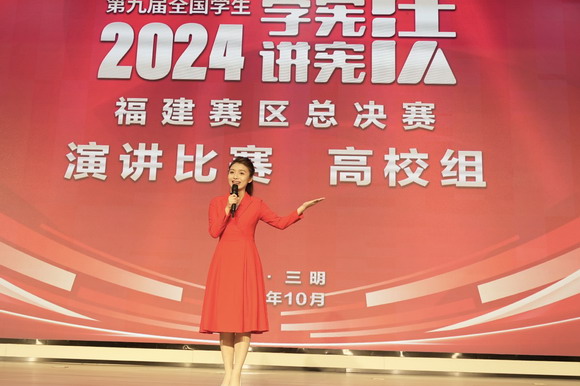 10月11日—12日,由福建省教育厅主办的第九届全省学生“学宪法 讲宪法”演讲总决赛和知识竞赛在三明举行,由我校吴惠老师指导的鲁晨爔同学在线上赛全省88所高等院校中脱颖而出,以全省第4名的成绩进入线下总决赛,是唯一入围的民办高校选手。经过现场激烈角逐,获得该项目的优秀奖。据悉,本次活动为省级遴选活动,获奖的优秀选手将代表福建赛区参加第九届全国学生“学宪法 讲宪法”比赛活动。