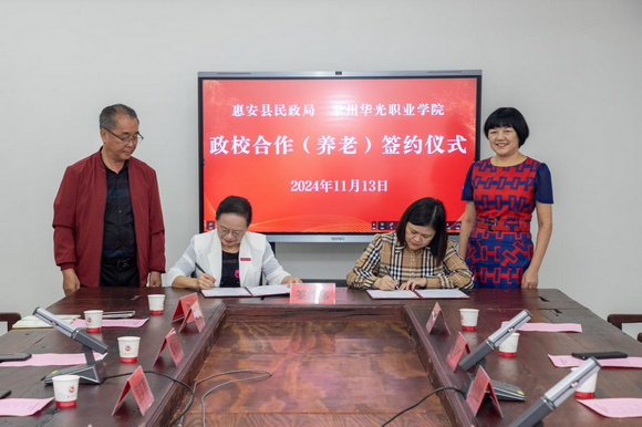 为共同培养优质的养老服务人才,提升养老服务质量,满足社会日益增长的养老服务需求,2024年11月13日,惠安县民政局与泉州华光职业学院隆重举行政校合作(养老)签约仪式。惠安县人民政府副县长陈剑虹、惠安县民政局局长陈清杰、惠安县民政局副局长钱晓明、惠安县民政局老龄工作和养老服务股股长庄锦阳,泉州华光职业学院董事长吴其萃、校长陈雅芳、惠安校区管委会主任曾国阳等领导出席,签约仪式由健康管理学院党支部书记黄冬梅主持。
