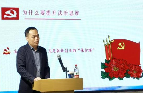 张科长阐释了习近平法治思想的11点核心要义,并详细介绍了泉州市法治政府建设概况,以创带建打造法治政府建设泉州样板。他从什么是法治思维、为什么要提升法治思维、怎样提升法治思维三个方面入手,指出提升法治思维路径:首先要积极主动学习法律知识、其次要积极参与法治实践活动、再次要树立法治观念。