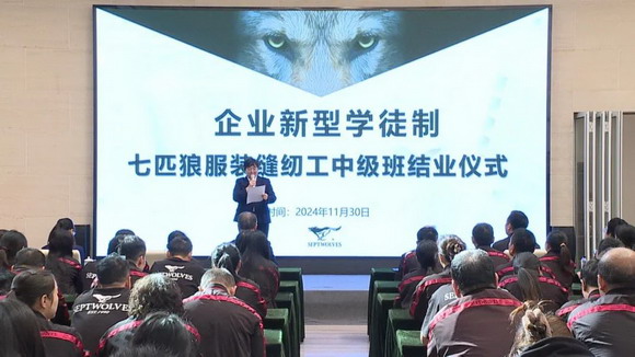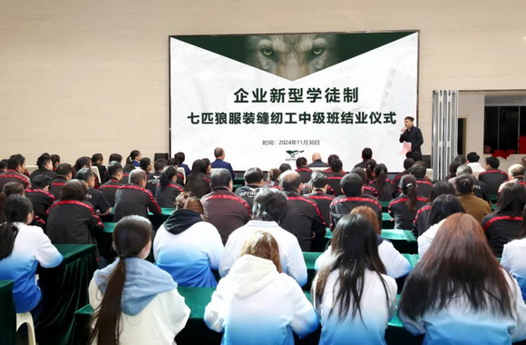 由福建七匹狼实业股份有限公司和泉州华光职业学院合作承担的《福建省企业新型学徒制项目(七匹狼中级服装缝纫工)》结业仪式,于11月30日在晋江金井七匹狼博物馆一楼大厅隆重举行。