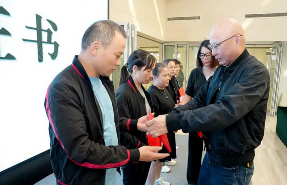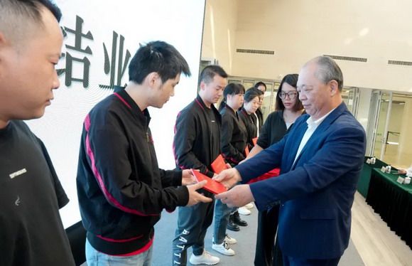福建七匹狼实业股份有限公司和泉州华光职业学院科技与工程学院的培训导师分别为企业新型学徒颁发结业证书。