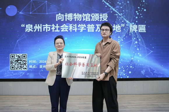 陈雅芳校长为福建省华光摄影艺术博物馆颁授“泉州市2024-2026年度社会科学普及基地”牌匾。