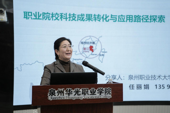 泉州职业技术大学科技处处长任丽娟教授做《职业院校科技成果转化与应用路径探索》主题报告讲座。