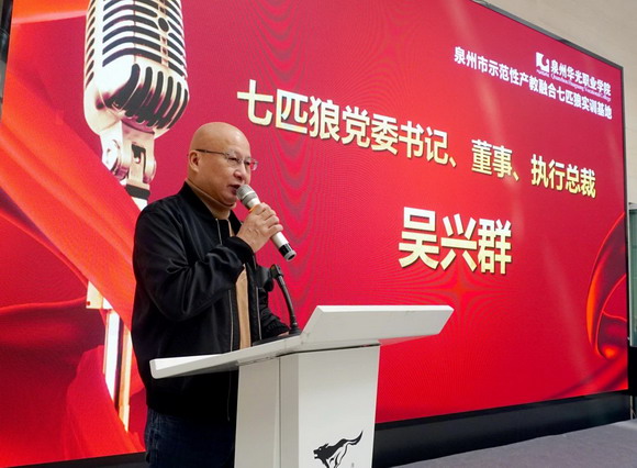 福建七匹狼实业股份有限公司党委书记、董事、执行总裁吴兴群在致辞中,高度肯定了七匹狼与华光在产教融合校企合作中取得的显著成果。他表示,企业将继续深化与学校的合作,通过共同育人、共建实训基地、实习就业等多形式的合作模式,推动企业学校共同发展。
