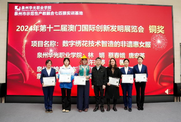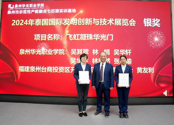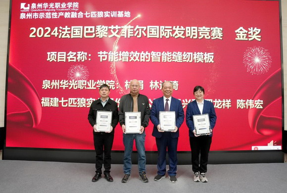 泉州华光职业学院产教融合研究院林娟院长宣布,国际发明金奖、银奖、铜奖和中国纺织职业教育教学成果奖获奖名单,以及企业和教师优秀导师名单、创新优秀学生名单。