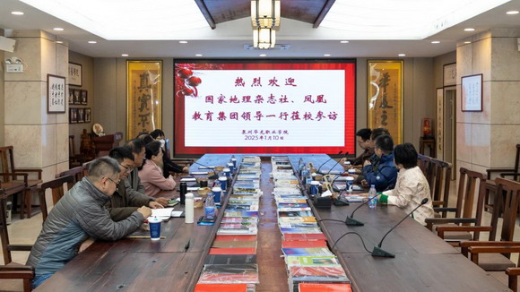 2025年1月10日,《中国国家地理》杂志社社长、总编辑李栓科,凤凰教育集团董事长吴炜强,凤凰数媒(北京)科技有限公司副总裁曹阳,执行院长高鹏飞一行莅临泉州华光职业学院参访。