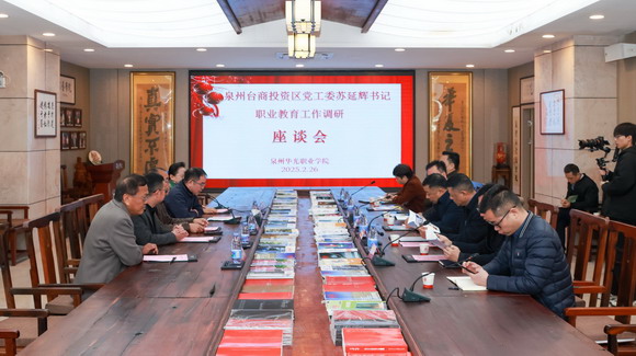 2月26日上午,泉州台商投资区党工委书记苏延辉莅临泉州华光职业学院调研指导职业教育工作,区领导赖丽水、黄晓东,区党工办主任庄占彬、教育文体旅游局局长陈东灿、民生保障局局长郭锦红,洛阳镇党委书记邱尚长等陪同调研。华光学院创始人吴其萃、理事长吴华轩、校长陈雅芳、党委书记吕红军、副校长郑敏庆等出席在行政楼一楼会议室举行的座谈会。