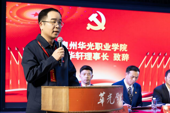 泉州华光职业学院理事长吴华轩致开幕词。他代表学校理事会,向长期关心支持学校发展的各级领导、兄弟院校和社会各界朋友致以诚挚的谢意,向为学校建设发展倾注心血的全校党员、教职员工和青年学子表示崇高的敬意。他表示,过去五年,是华光人勠力同心、破浪前行的五年,是学校发展历程中具有里程碑意义的五年。在泉州市委教育工委的正确领导下,学校党委切实发挥政治核心作用,与理事会、校行政协同推进学校改革发展,团结凝聚全体师生员工,以习近平新时代中国特色社会主义思想为指导,在职业教育改革大潮中劈波斩浪,在服务区域发展中勇担使命,走出了一条特色鲜明的高质量发展之路。