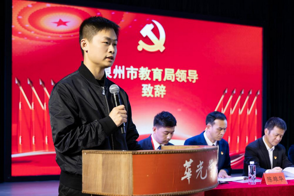 潘振斌代表泉州市委教育工委向大会的召开表示热烈的祝贺,并向全校党员干部和师生员工致以诚挚的问候。他指出,中共泉州华光职业学院委员会坚持以习近平新时代中国特色社会主义思想为指导,深入贯彻党的二十大和二十届二中、三中全会精神,全面贯彻习近平总书记关于教育的重要论述,扎扎实实办教育,为社会各行业培养了一批优秀人才,得到社会各界的肯定。他强调,学校要以新一届党委成立为契机,进一步加强和改进学校党的建设和思想政治工作,系统谋划落实各项改革发展任务。一要强化政治引领,校准办学方向的“指南针”。充分发挥党委在学校发展进程中的政治核心作用,对学校阶段性发展目标、整体思路及重点举措展开深入研讨与审慎决策,构建严密的执行与监督机制,全力推动各项改革发展举措落地见效。二要夯实党建堡垒,激活组织建设的“动力源”。围绕学校自身特色与优势,精心打造具有华光特色的“党建+”品牌项目,助推党建工作整体水平实现质的飞跃,以高质量党建引领学校高质量发展。三要聚焦特色发展,打造质量提升的“新高地”。充分发挥学校在摄影摄像、文化艺术等领域的独特优势,深入开展现代学徒制、“1+X”证书制度等建设,进一步完善校企合作育人机制,更好赋能专业人才成长。紧密贴合产业需求,通过共建产业学院、实训基地等创新合作形式,打造产学研一体化平台。