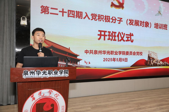 为深入学习贯彻党的二十届三中全会精神及中央八项规定精神,全面贯彻习近平新时代中国特色社会主义思想,巩固拓展主题教育和党纪学习教育成果,贯彻落实新时代党的建设总要求和新时代党的组织路线,严格做好我校发展党员工作,5月9日下午,泉州华光职业学院党校第二十四期入党积极分子(发展对象)培训班开班仪式在摄影大楼智慧教室顺利举行。党委书记吕红军出席开班仪式并作动员讲话,各党(总)支部书记及全体党校学员参加开班仪式。仪式由党委委员、党委办公室主任何立主持。
