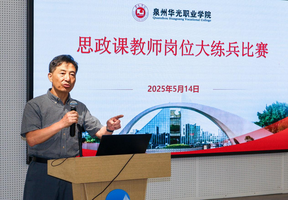 为深化思政教育教学改革,提升教师专业素养,2025 年 5 月 14 日下午两点,泉州华光职业学院在图书馆 1 楼智慧学术报告厅举办 “思政课教师岗位大练兵” 教学比赛。此次活动特邀泉州信息工程学院马克思主义学院石智生院长、仰恩大学马克思主义学院李超教授、黎明职业大学马克思主义学院蒋琪纯副院长担任评委,我校校长陈雅芳、党委书记吕红军、总会计师黄金华莅临现场指导,全校思政教师及读书社学生代表参与观摩。