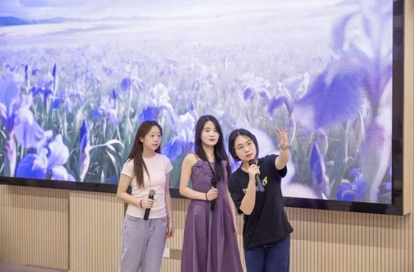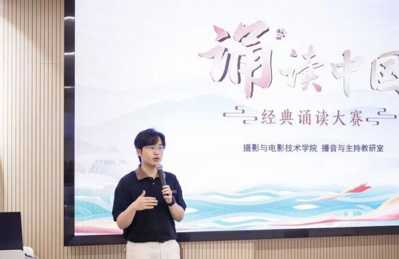 杨力帆老师分享了比赛和舞台表演经验,传授诵读技巧,并带领同学们共同学习文学作品演播和诵读技巧。通过诵读承载中华美学精神的文学作品,让同学们对中华经典文化作品有了更深刻的理解。《向太阳》《会唱歌的鸢尾花》等作品在同学的演绎下,焕发出新的生机与活力,同学们用声音塑造形象,用情感传递力量,将经典韵味展现得淋漓尽致。