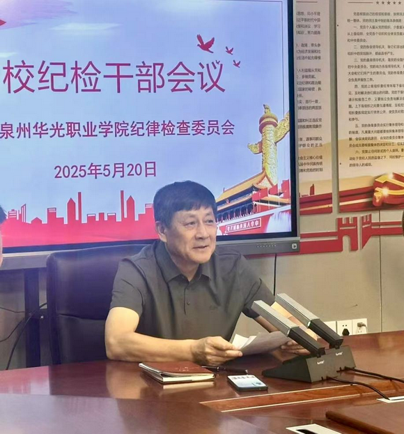 为进一步加强我校纪检干部队伍建设,提升纪检干部的政治素养和业务能力,中共泉州华光职业学院纪律检查委员会于2025年5月20日在行政楼三楼会议室召开全校纪检干部会议。本次会议由校纪委书记苏成安主持,全体纪检干部参加会议。