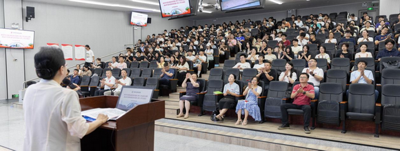 崔荫副校长代表学校向2025年度技能大赛中奋勇而归的选手们表示热烈祝贺以及为支持大赛工作的全体教职工表示感谢。2025年度我校三等奖以上获奖率55%,位全省民办高职第二;一等奖获奖总数位居福建省民办高职第一。并且从五个方面对暑期集训工作进行部署:首先,她要求有关二级学院(部)和职能部分要加强管理,做好备赛和保障工作;其次,要充分发挥赛项教研作用;第三,指导老师制定并执行好赛项集训计划,高标准完成备赛工作;第四,备赛选手要服从指导老师的指导安排,高标准完成备赛任务;第五,要加强赛项信息收集、分析和利用工作,优化竞赛指导。呼吁全体师生以此次会议为契机,将“以赛促教、以赛促学、以赛促岗、以赛促进”的理念内化于心、外化于形,预祝华光战队在2026大赛中再攀高峰。