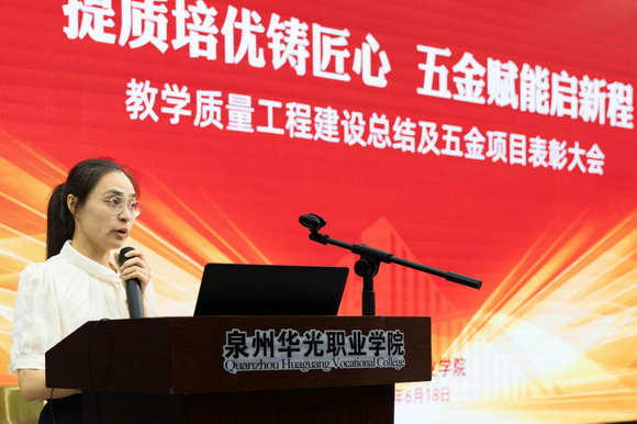 为全面贯彻党的教育方针,围绕落实立德树人根本任务,培养更多高素质技术技能人才、能工巧匠、大国工匠,切实提升教育教学质量,将“五金”建设落到实处,6月18日下午,泉州华光职业学院以“提质培优铸匠心,‘五金’赋能启程”为主题的教学质量工程建设总结及“五金”项目表彰大会在智慧教室隆重举行。陈雅芳、崔荫、苏成安、陈雄华、郑敏庆、黄金华等校领导出席大会。
