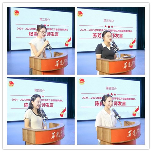 随后,校团委杨雪帆、苏芳玲、陈佩榕、曾莎莎四位老师依次登台,分别针对其分管的惠安校区督察队、国护队、广播站;青年志愿者协会、社团联合会、艺术团;台商校区广播电台、国护队、易班;学生团委会、学生会等组织年度工作表现情况进行总结发言,全面总结工作亮点与成效,深入剖析不足,并对未来发展提出明确规划。