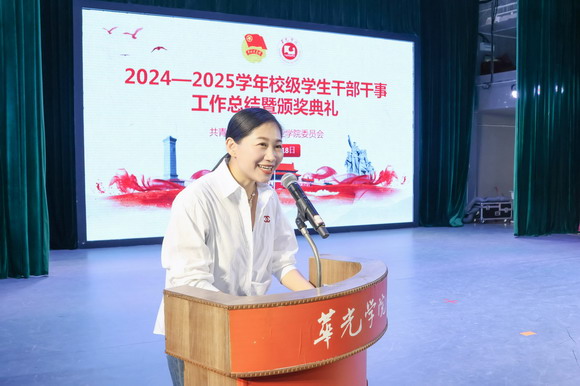 2025年6月18日,泉州华光职业学院校团委在吴文季音乐厅召开2024-2025学年校级学生干部干事工作总结大会。本次会议由校团委书记肖理香主持,校长陈雅芳、校党委书记吕红军等领导、校团委干事及全体校级学生干部干事齐聚一堂,共同回顾奋斗足迹,展望崭新征程。